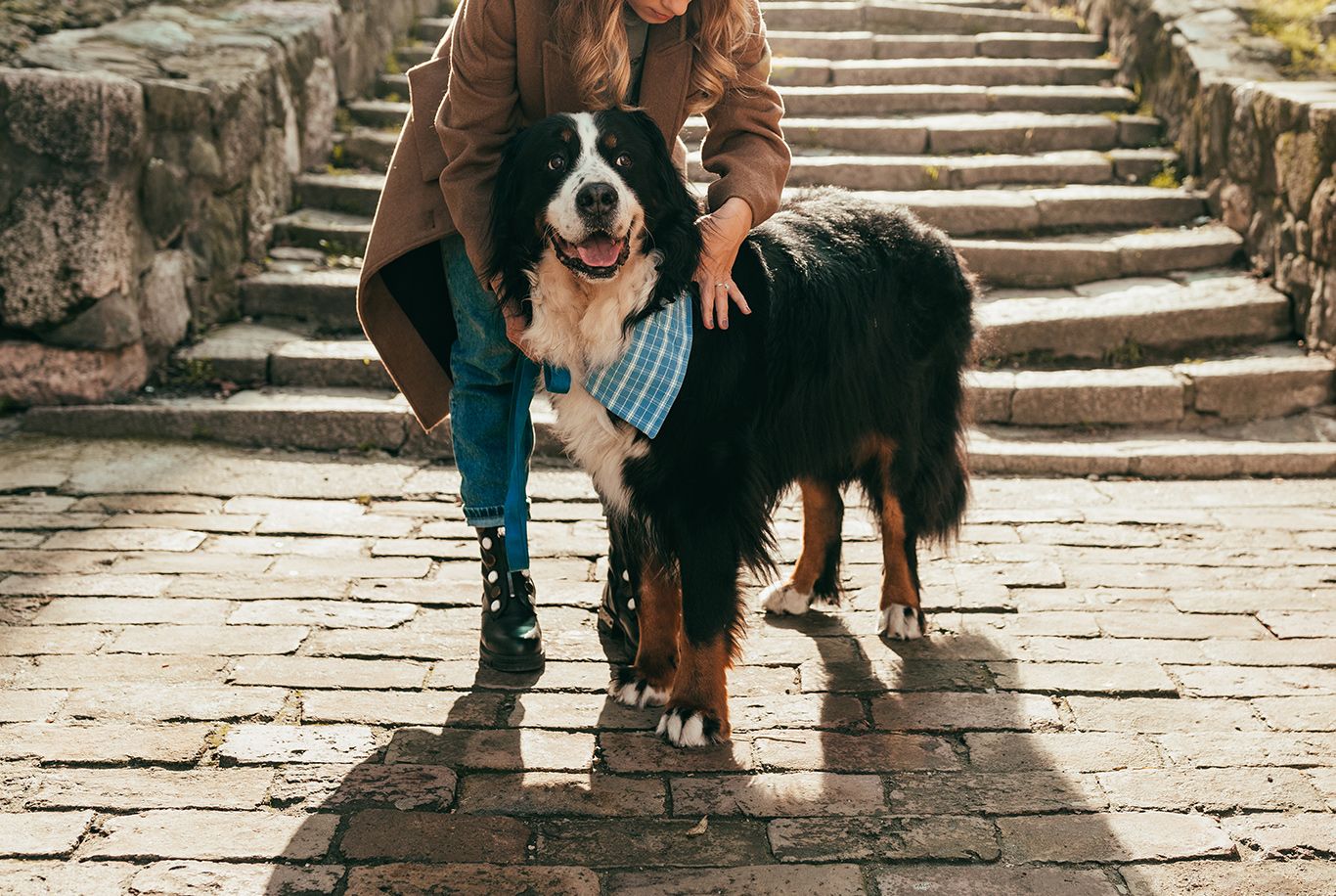 Noor Berni alpi karjakoer võib jalutuskäigu ajal püüda jalutusrihma sikutada. Hangi talle vastupidav kaelarihm ja jalutusrihm. Erksaks värvitud kaelarihma pigem väldi, sest see võib tema kaelale plekid jätta. Berni alpi karjakoer vajab vastupidavaid sobiva suurusega mänguasju – väldi väiksemaid esemeid, sest need võivad talle kurku minna.